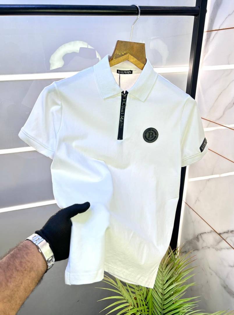 Balmai n Paris White Imported Premium Polo Collar Neck T-shirt F3035-W3