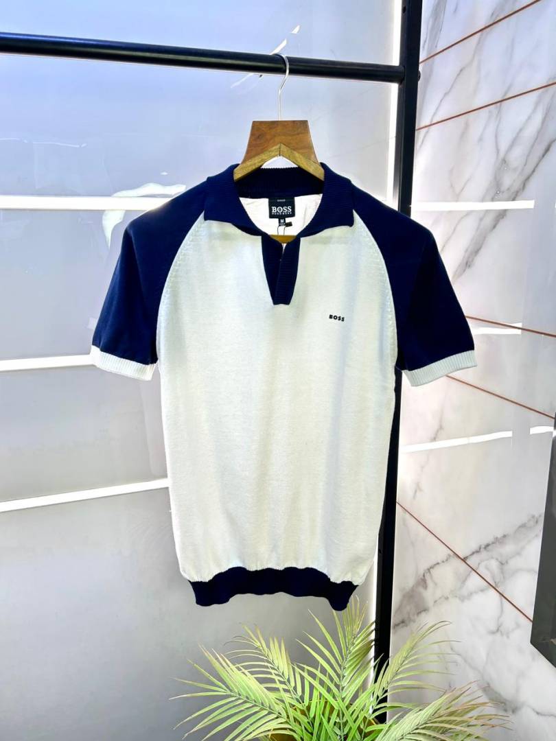 Boss Knitted Polo White Super Premium Collar Neck T-shirt F3132-W2