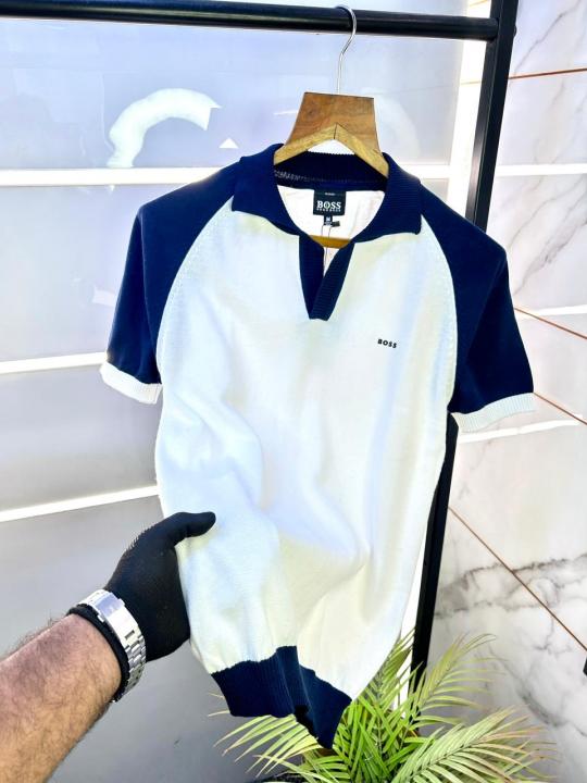 Boss Knitted Polo White Super Premium Collar Neck T-shirt F3132-W1