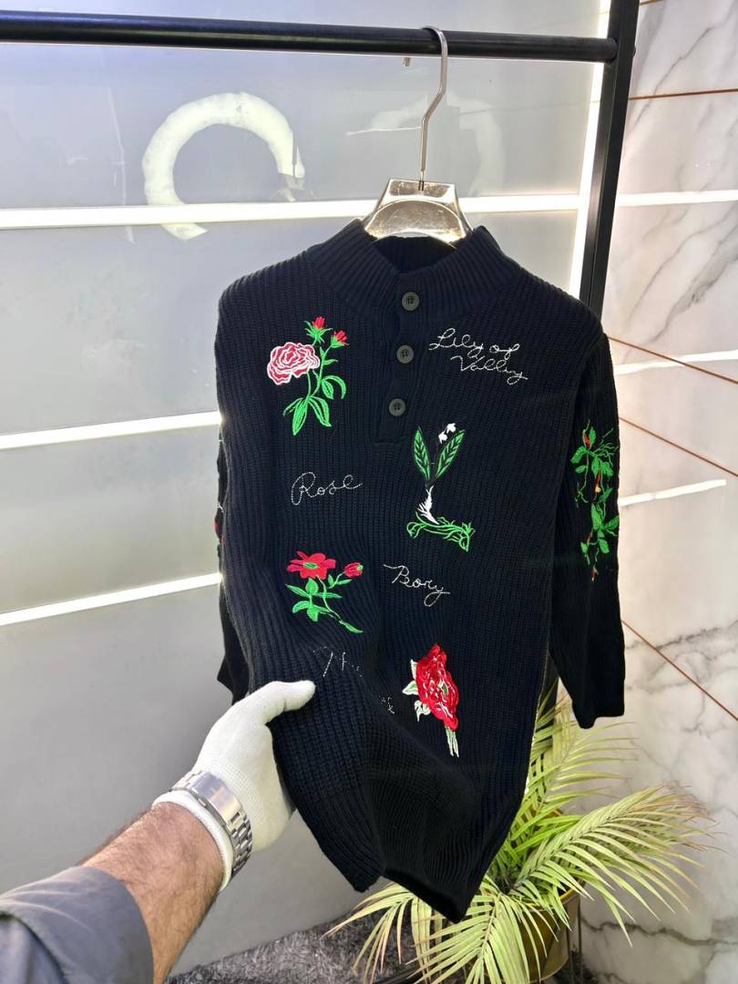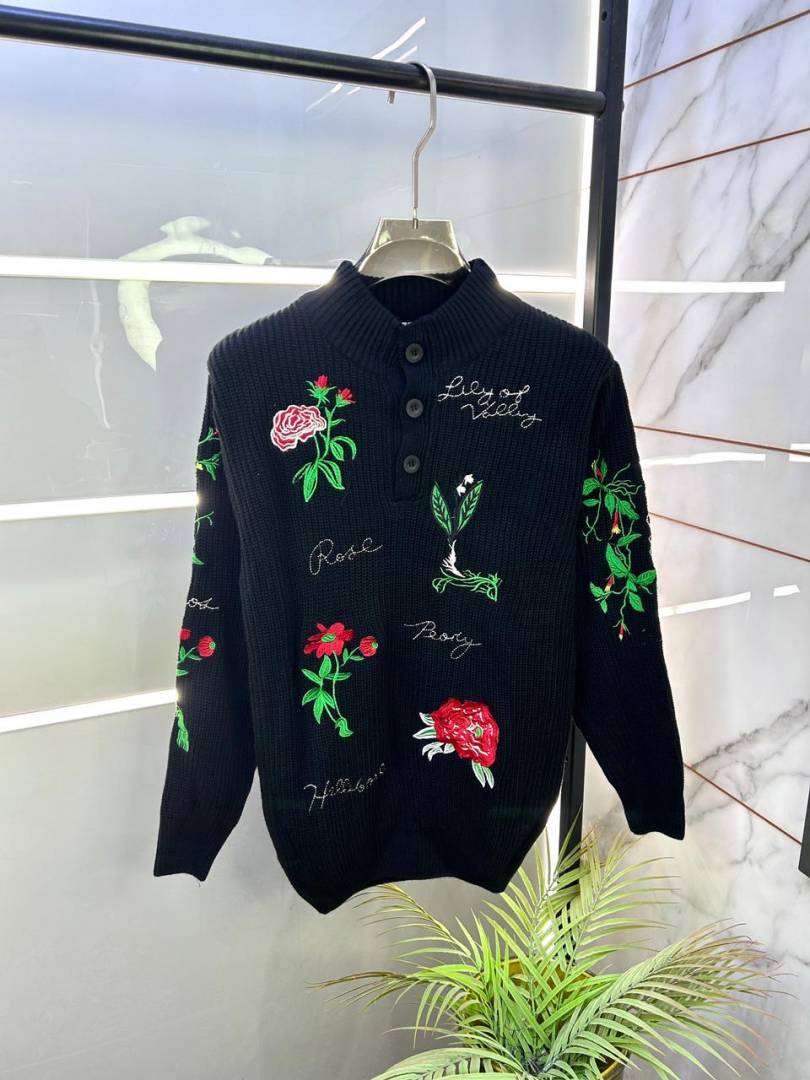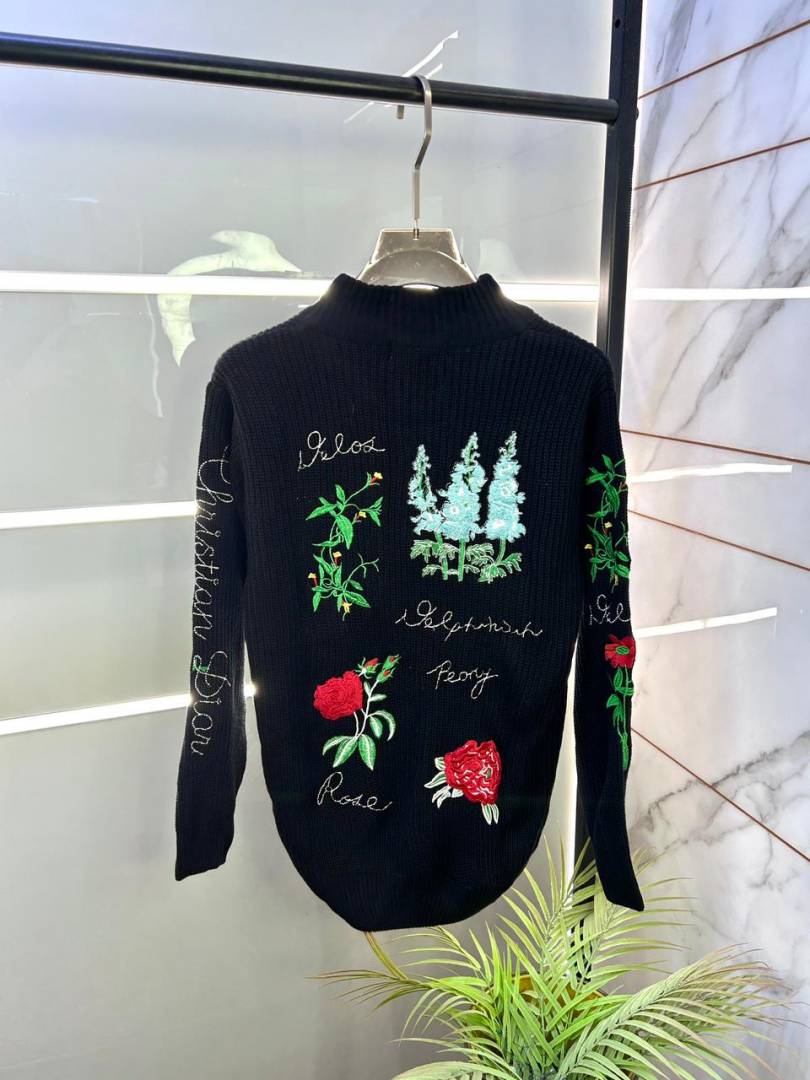 Christian Dio r Imported Allover Embroidery Super Premium Black Pullovers F3291-BL
