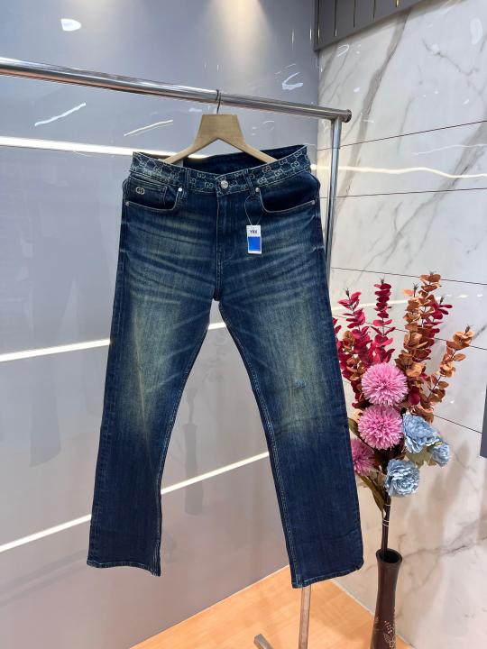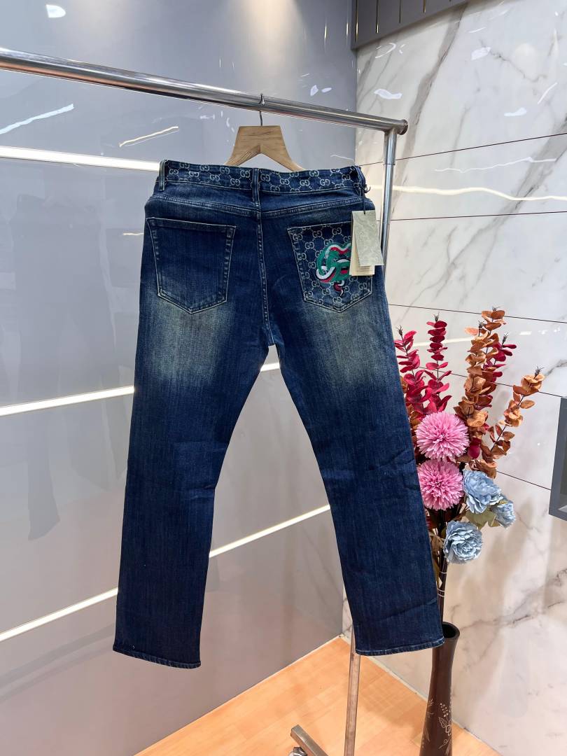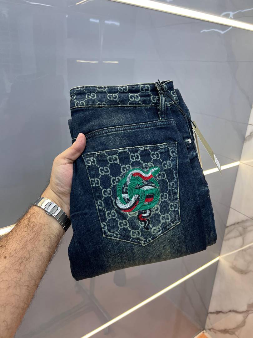 Gucc i Blue Shade Premium Imported Stretchable Lycra Fabric Straight Fit Denim with Embroidered Design 3489
