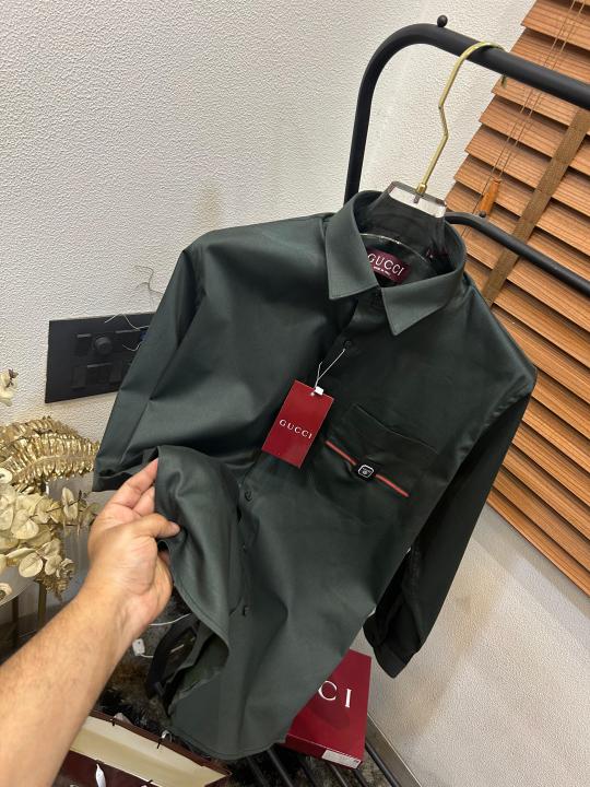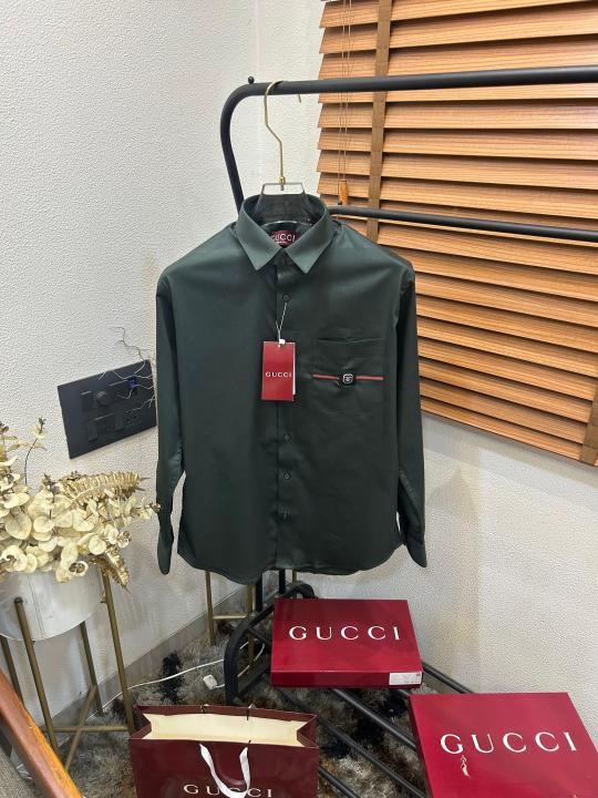 Gucc_i Pocket Signature Patched Imported Partywear Shirt With Og Box & Bag (DN 502)