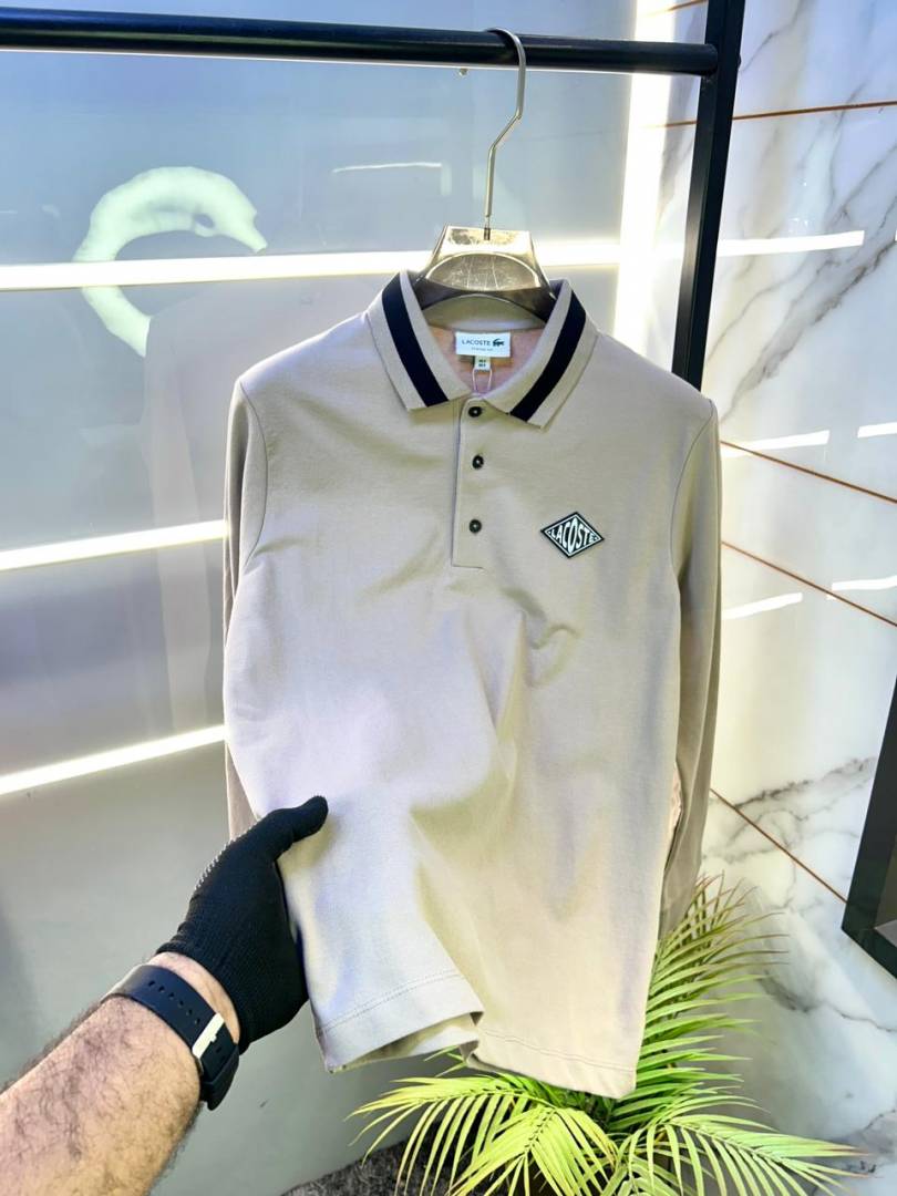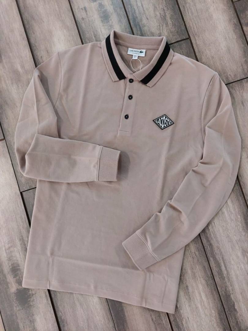 Lacost e Beige Polo Neck Full Sleeves Premium Collar T-shirt F3235-BE1