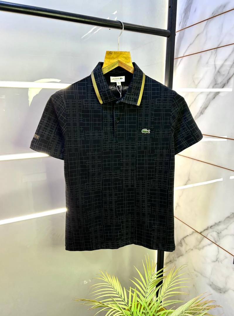 Lacost e Black Polo Premium Collar Neck T-shirt F3056-B2