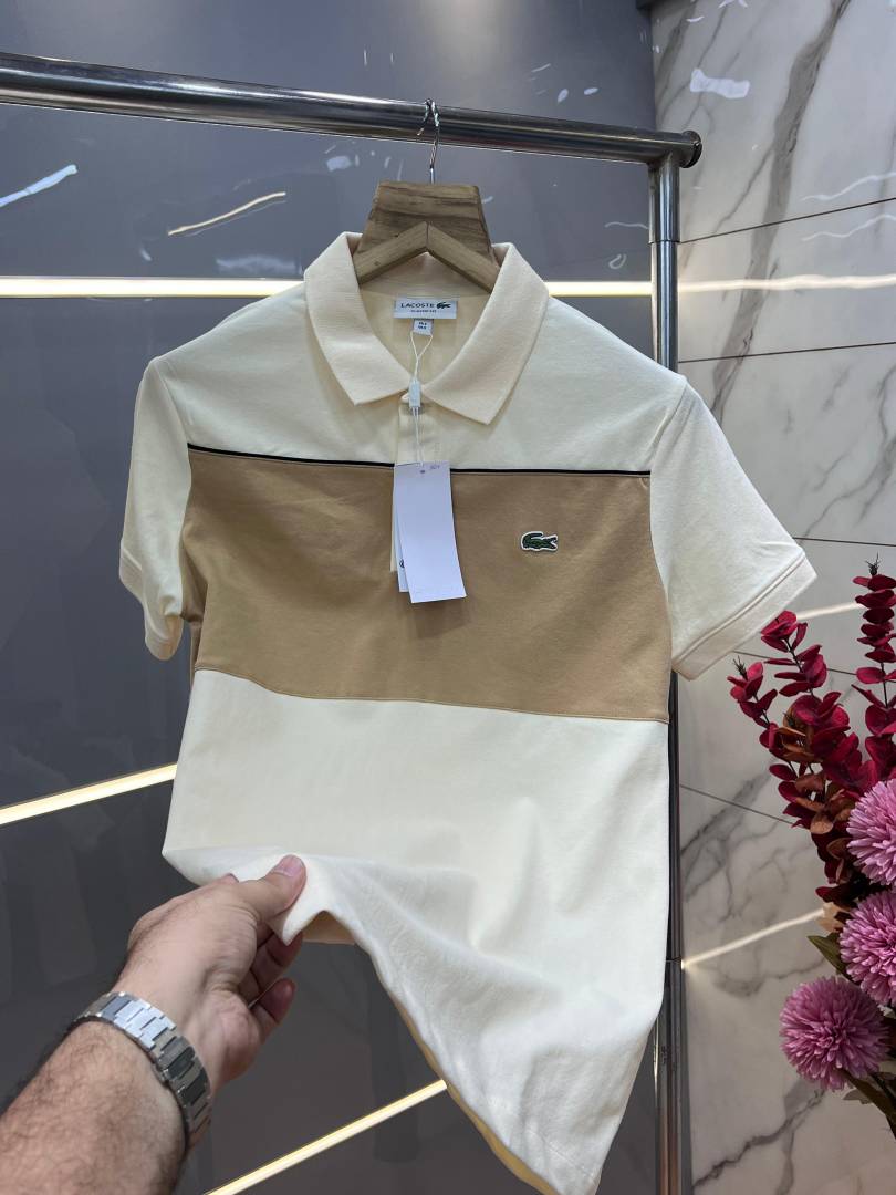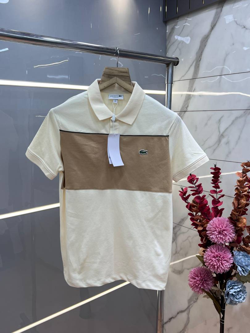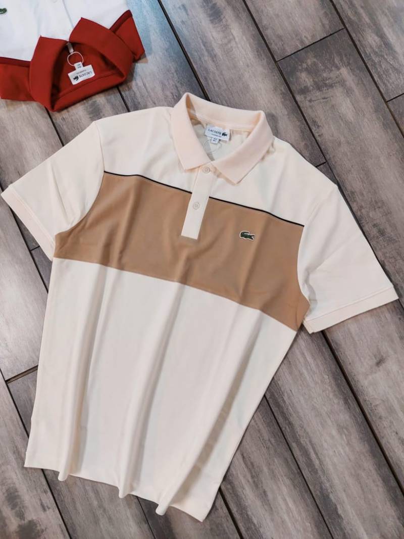 Lacost e Cream Premium Cotton Pique fabric Polo Tshirt with Front Design and Embroidered Logo 3539