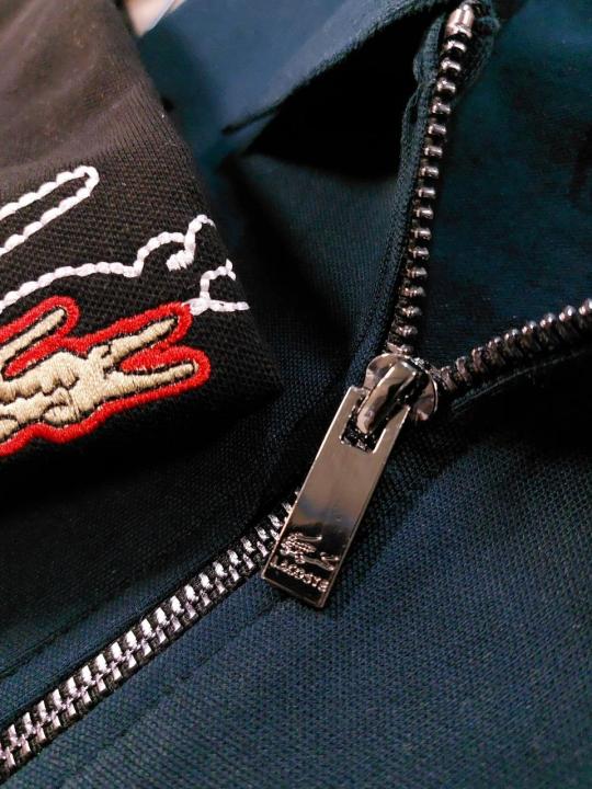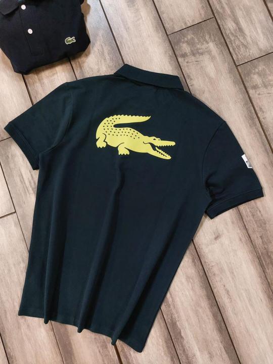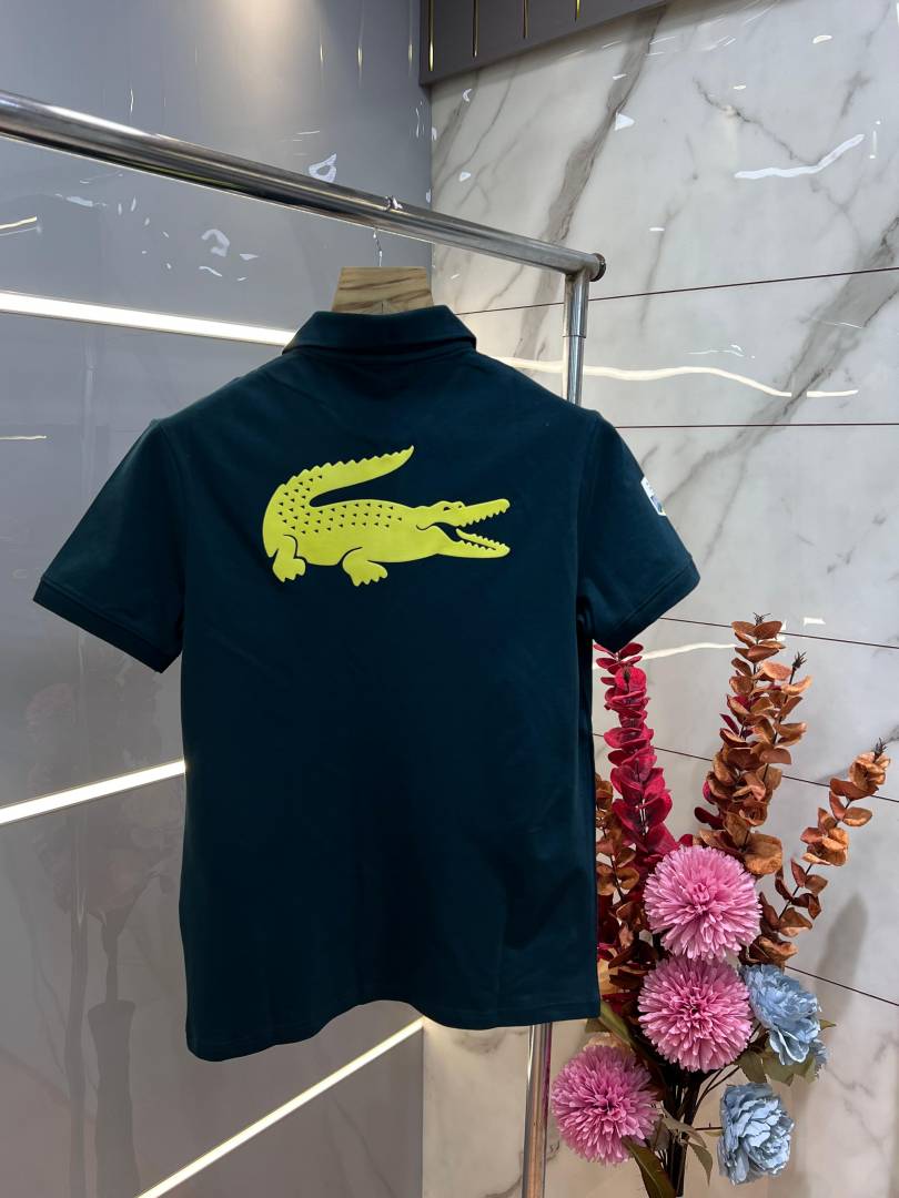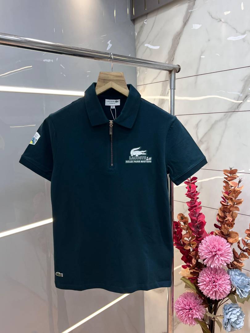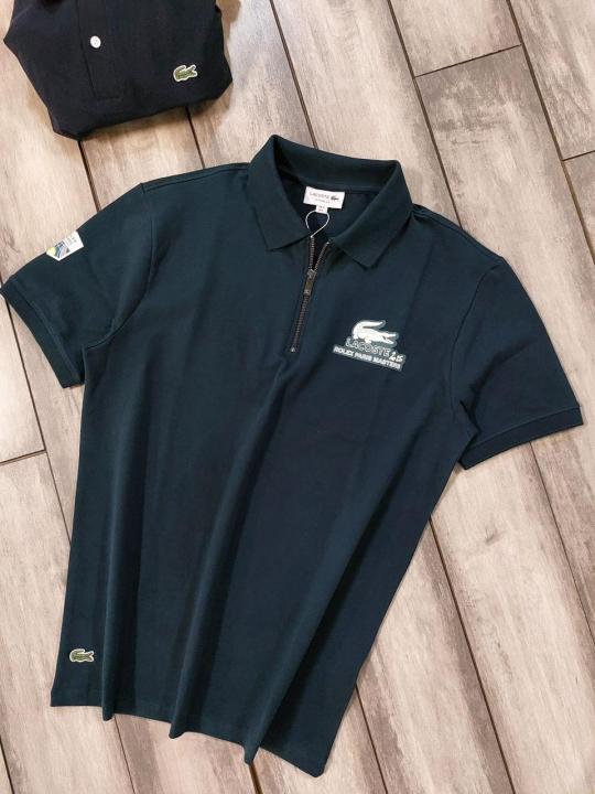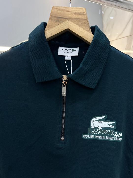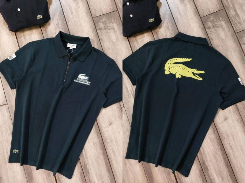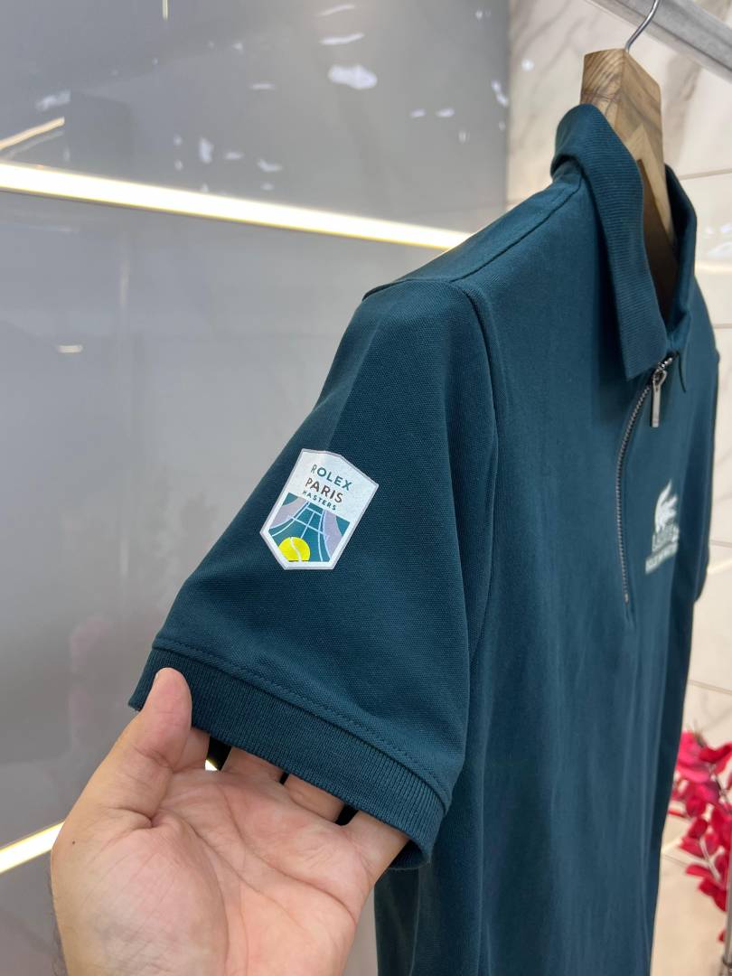 Lacost e Green Premium Cotton Pique fabric Polo Tshirt with Back Design and Embroidered Logo Zip Style 3459