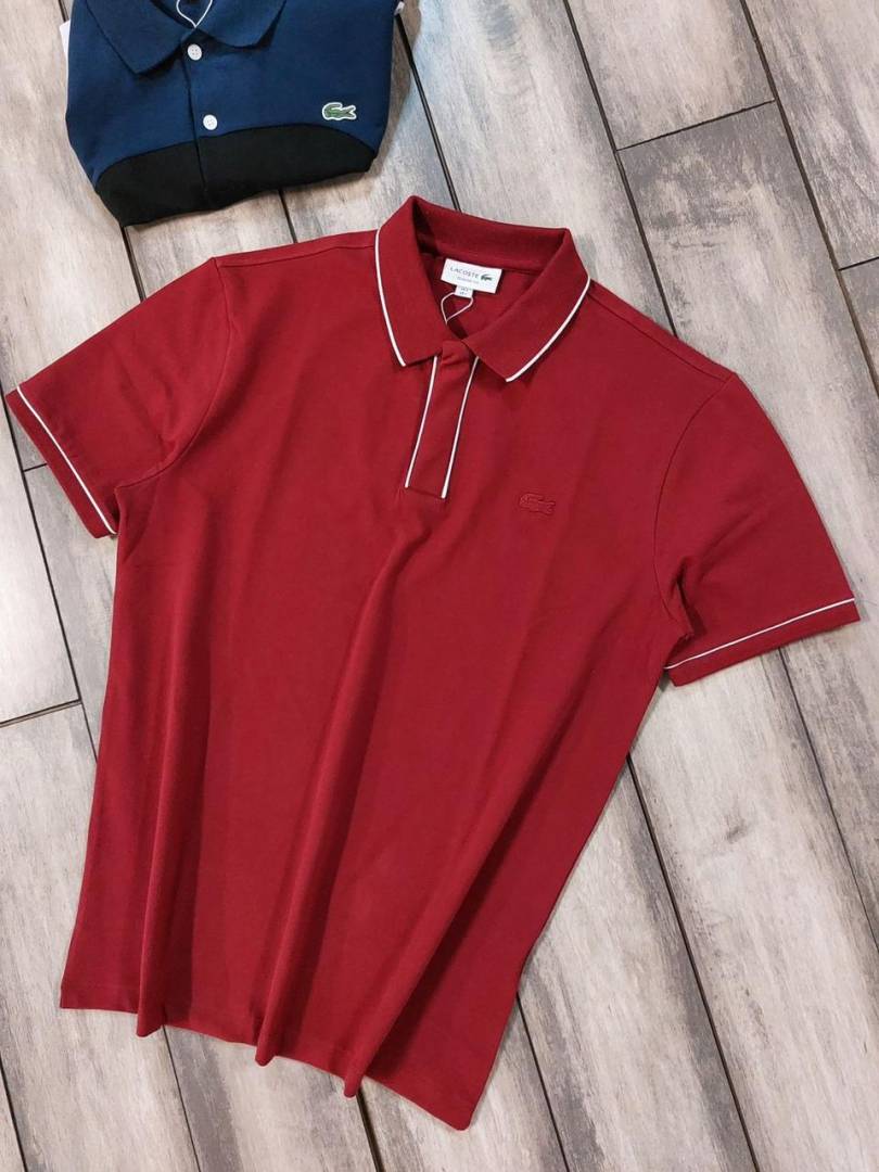 Lacost e Maroon Premium Cotton Pique fabric Polo Tshirt with Collar Design and Embroidered Logo 3455