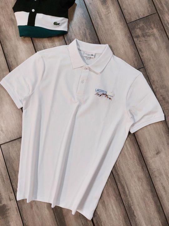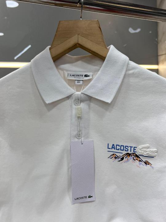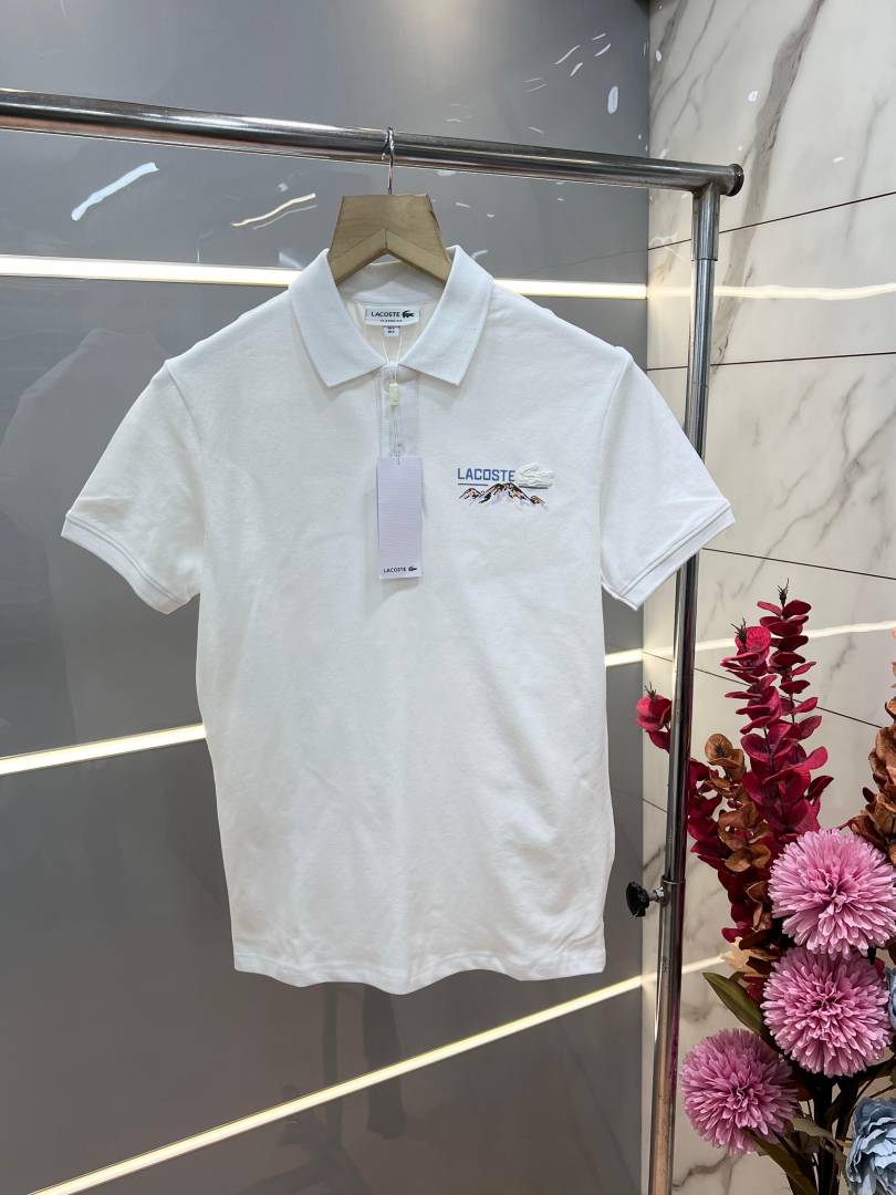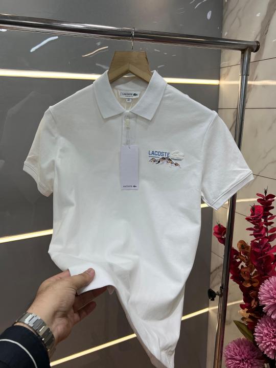 Lacost e White Premium Cotton Pique fabric Polo Tshirt with Front Design and Embroidered Logo 3168