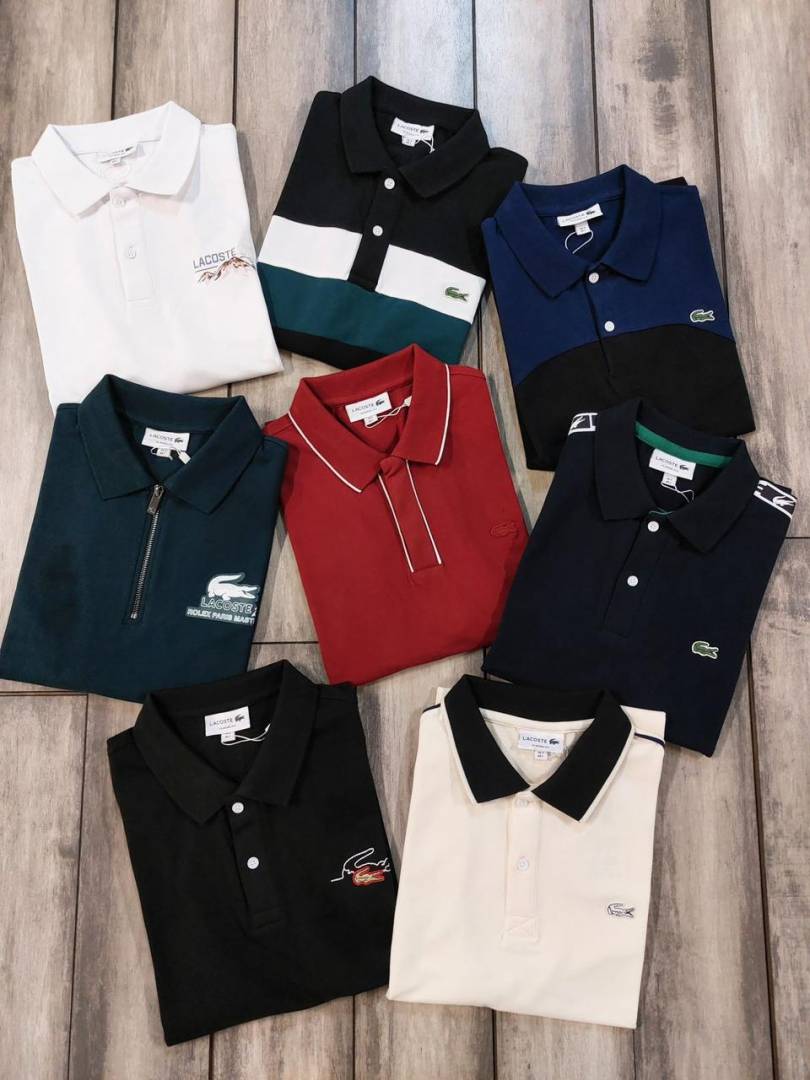 Lacost e Navy Premium Cotton Pique fabric Polo Tshirt with Shoulder Design and Embroidered Logo 3458