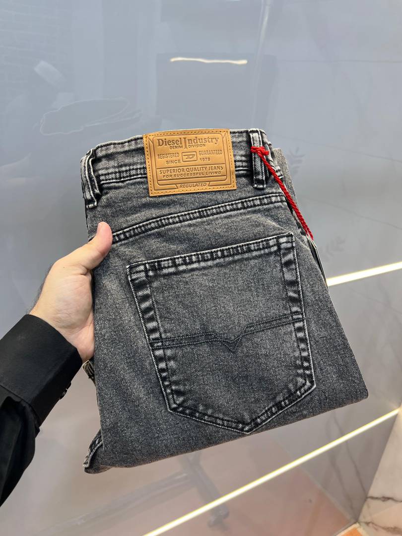 Diese l Dark Grey Shade Premium Imported Stretchable Lycra Fabric Straight Fit Denim with Embroidered Work 3475
