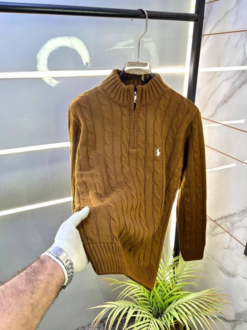 Ralph Laure n Brown Premium Imported High Neck Knitted Pullover Half Zipper Style 3570
