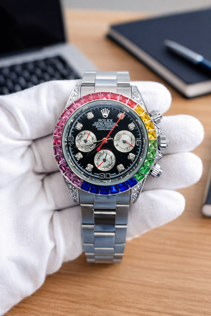 ROLEX DAYTONA RAINBOW DIAMOND SILVER BLACK DIAL