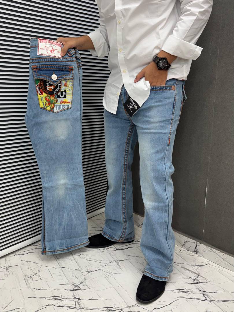 True Religion Light Blue 100% Imported Latest Store Article Very Premium Bootcut Jeans 491