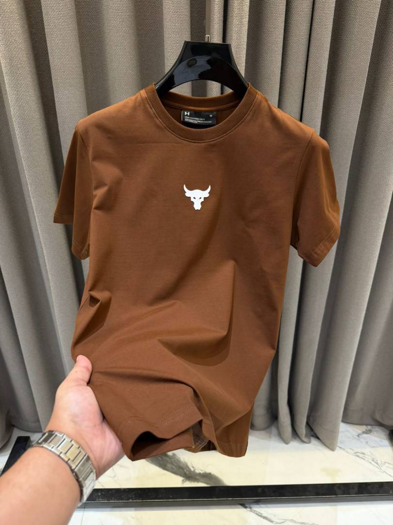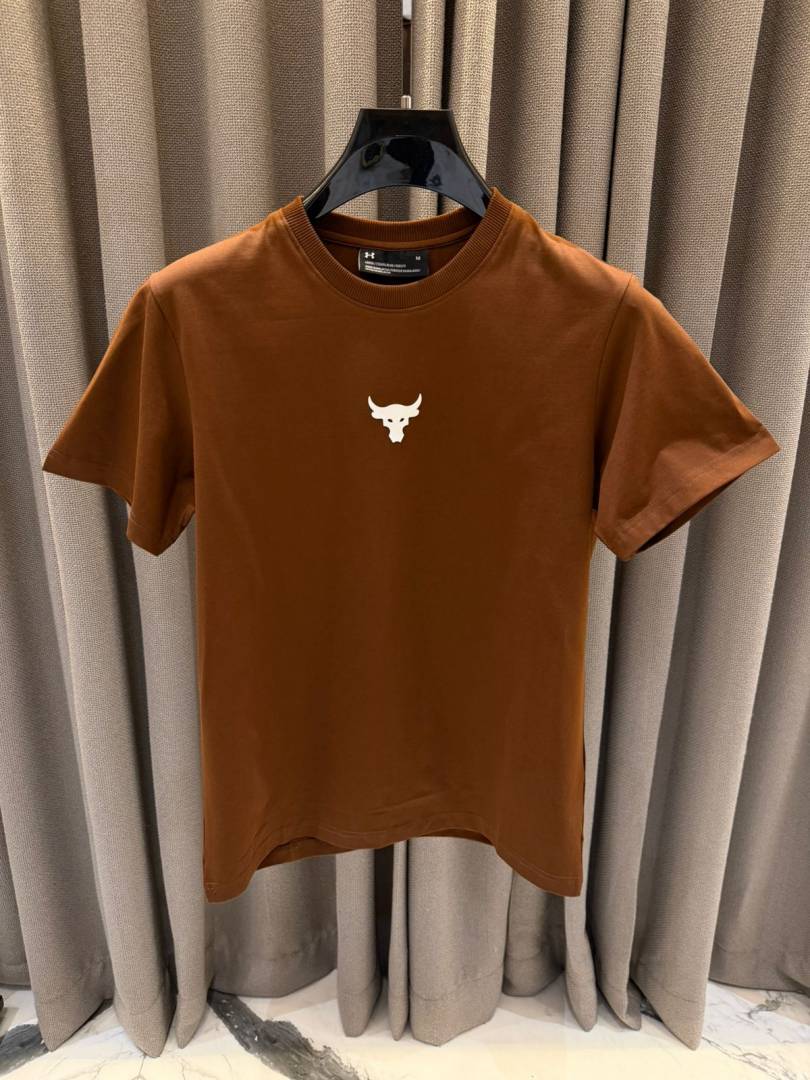 Under_Armour Middle Brand Logo Round Neck T-shirt Brown